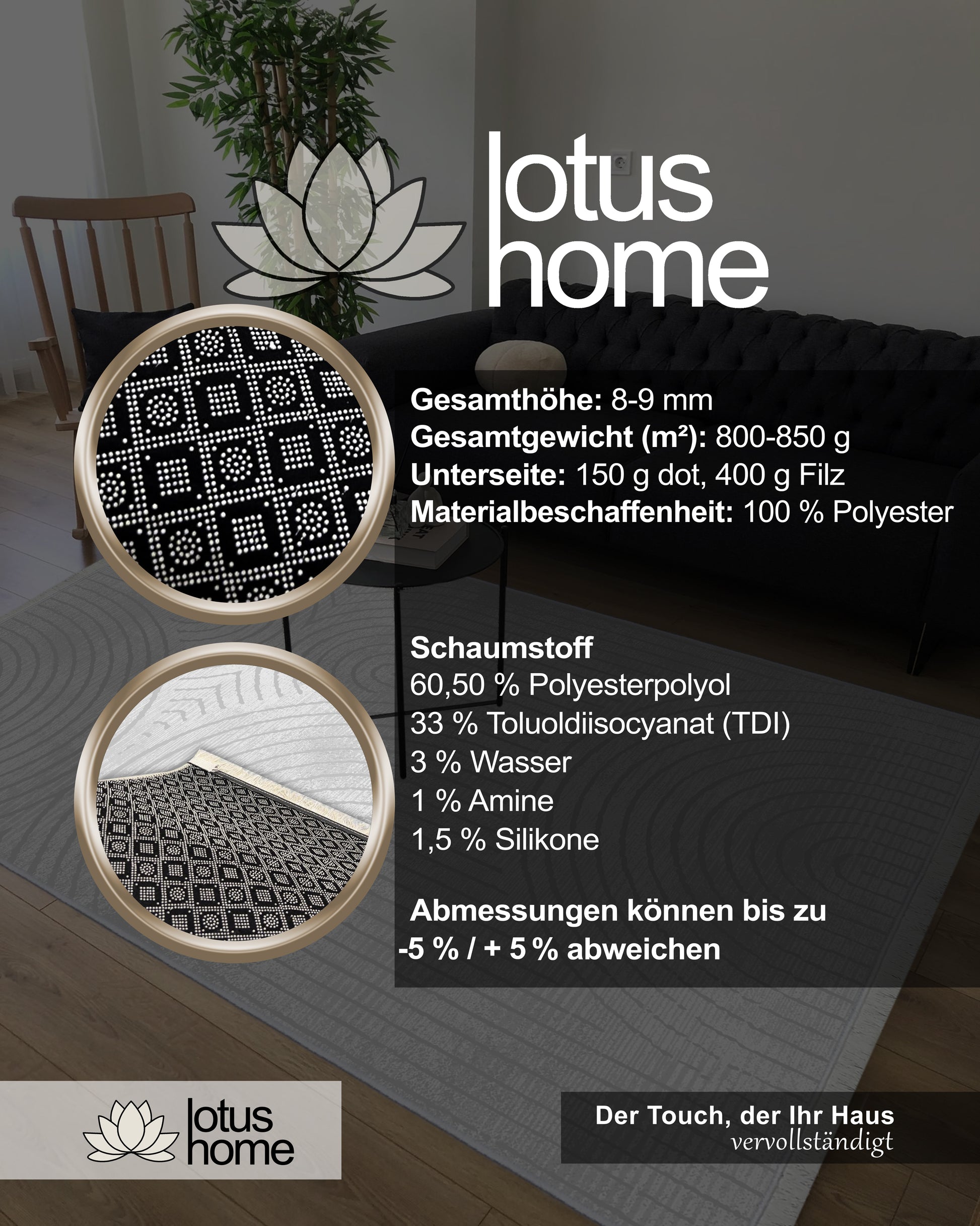 Sicher & alltagstauglich: Rutschfest, schadstofffrei, allergikerfreundlich und fußbodenheizungsgeeignet